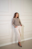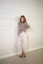 Kolejna odsłona naszego bestselleru ANNA w przepięknym beżowym kolorze. Spodnie o fasonie w literę „O” ze średnim stanem i cięciem na przodzie, które poza optycznym wyszczupleniem ma funkcję stabilizacji brzuszka. Nogawki są szerokie w udzie oraz lekko zawężone ku dołowi poprzez zastosowanie zaszewek. Są wykonane z miękkiego i „lejącego się” denimu, który w swoim składzie ma Lyocell. Ela ma 170cm wzrostu i ma na sobie rozmiar S.