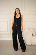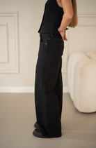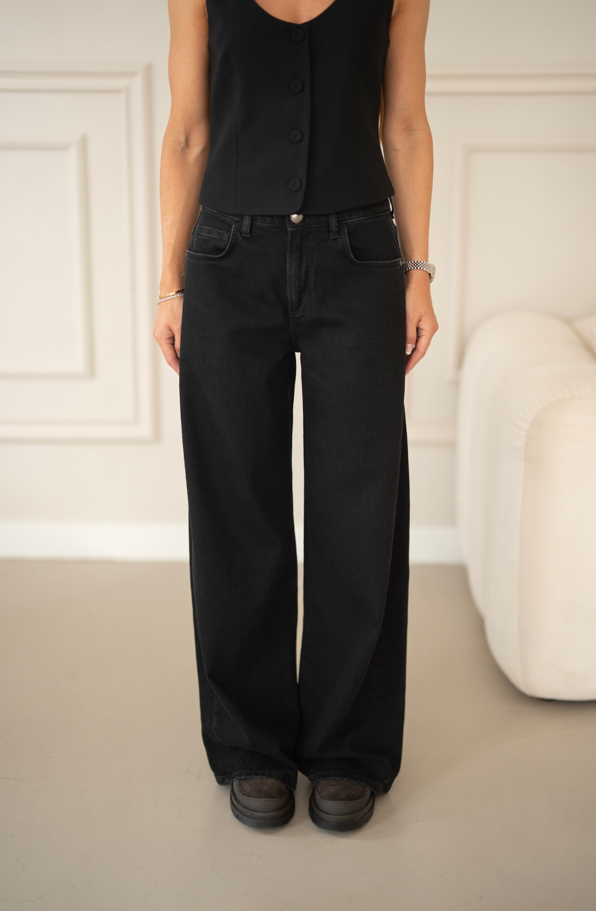 The perfect jeans for warm days. Discover the new edition of WIDE LEG trousers, very wide legs and medium waist. They shape the silhouette and lengthen the legs wonderfully! They are made of thin, soft and "flowing" denim, which contains LYOCELL. The model is 170 cm tall and wears size S.