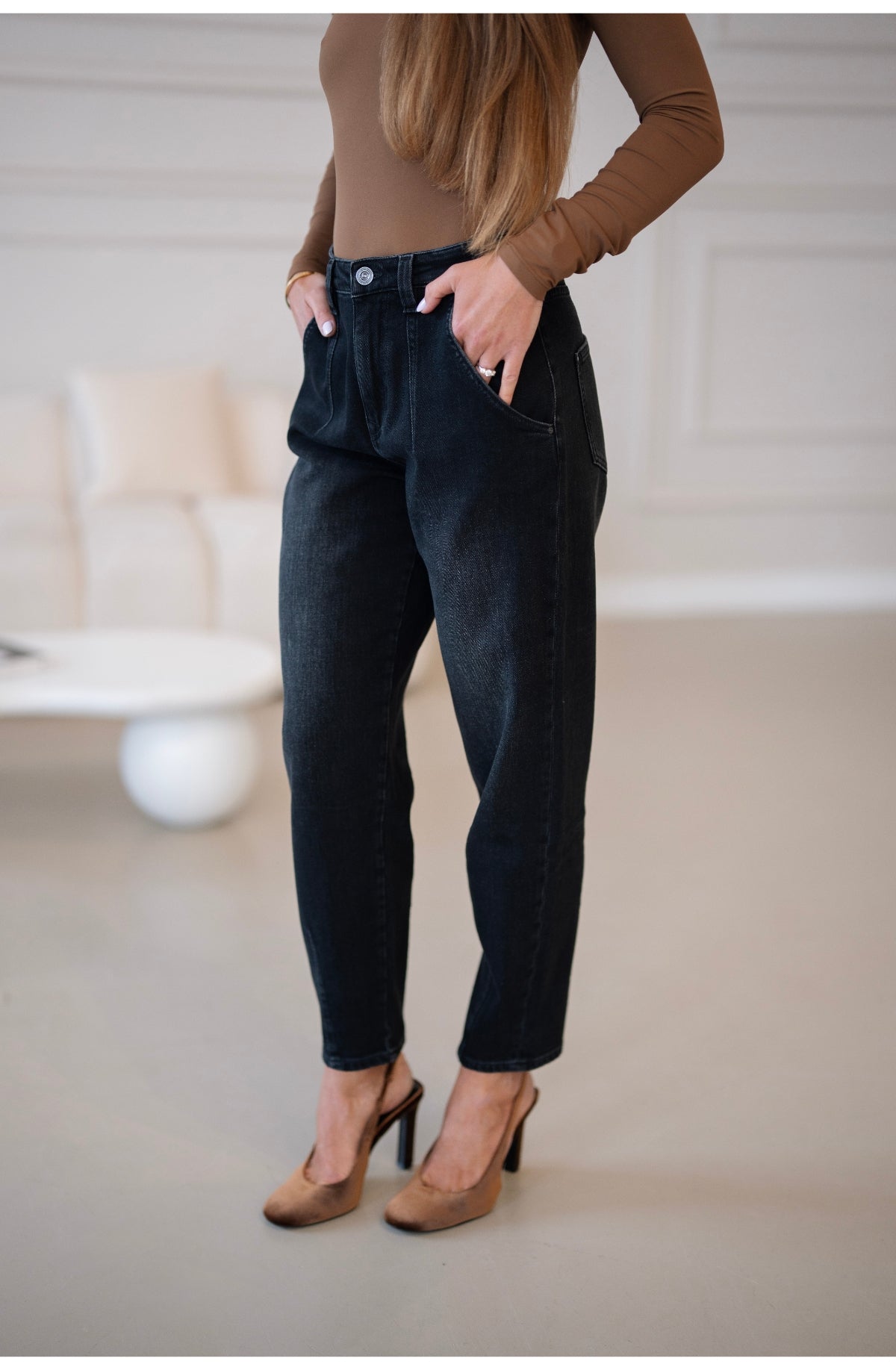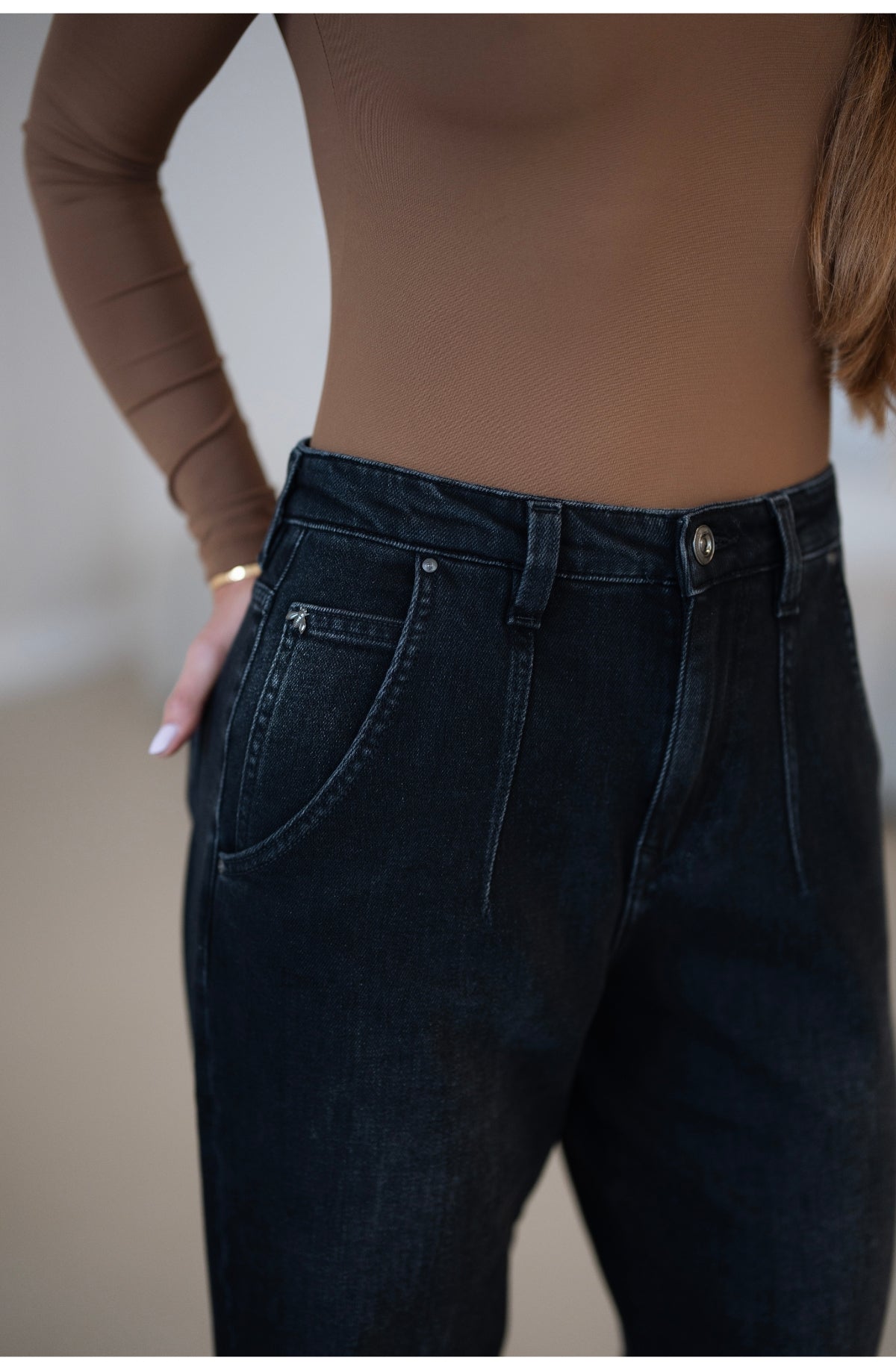 Alice trousers in an intense black colour are our elegant interpretation of denim chinos. The fashionable cut with a high waist, darts on the front and bottoms of the legs means that they will match many styles - everyday, office and evening. Made of an exceptionally soft material with a cashmere touch, which guarantees comfort all day long. The fabric contains "Lycra T400", thanks to which the trousers maintain their shape and do not lose their shape. The model is 170 cm tall and wears size S/28.