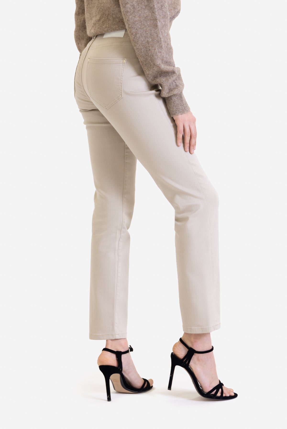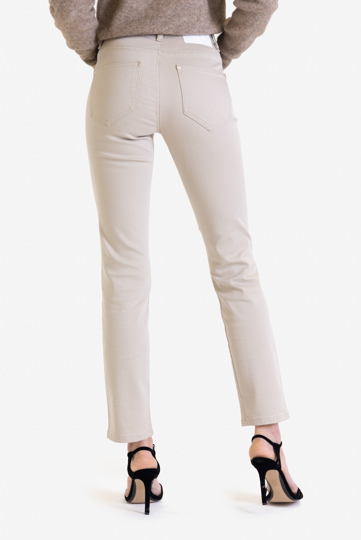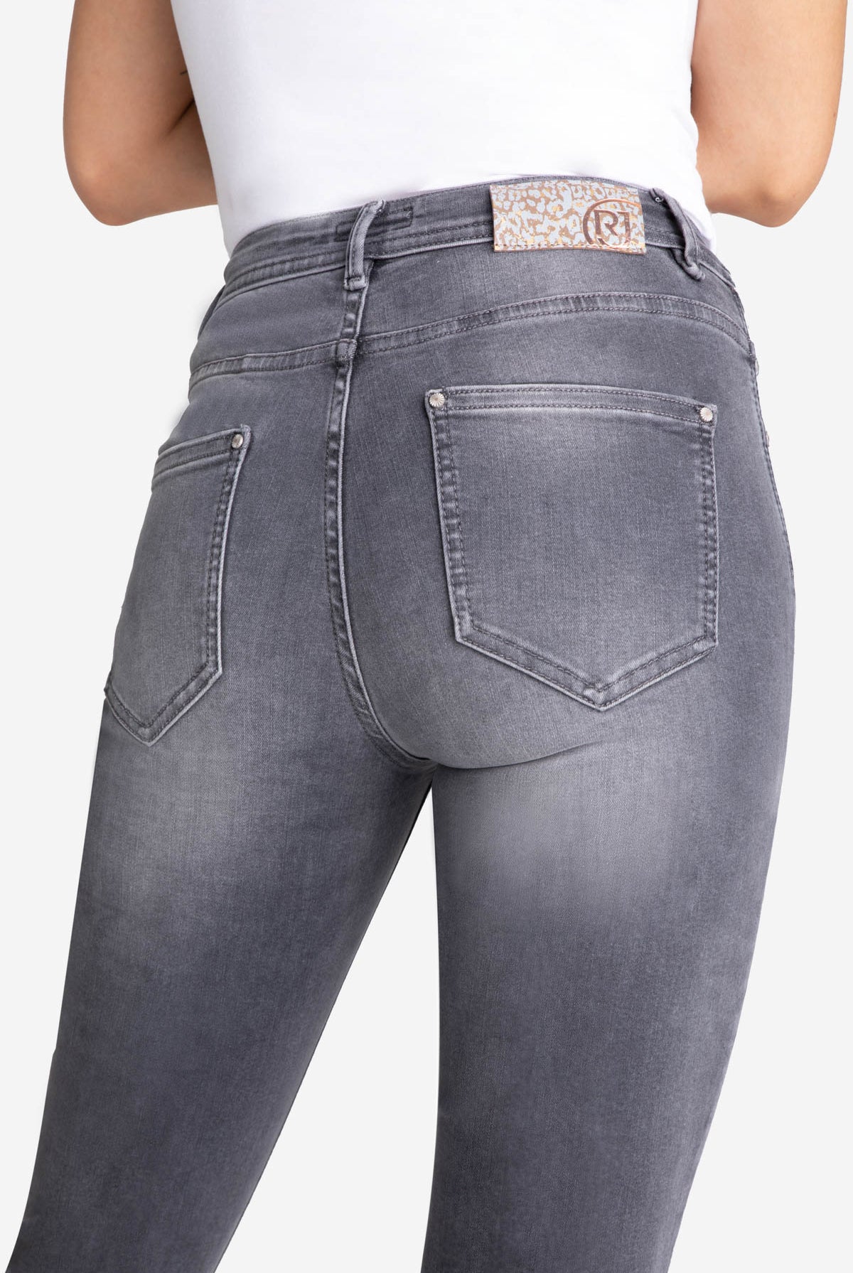 Straight Fit jeans. Medium waist. Straight leg. Very soft and delicate fabric in grey colour with fringed. Our Model is 170cm tall and wears size S/28.