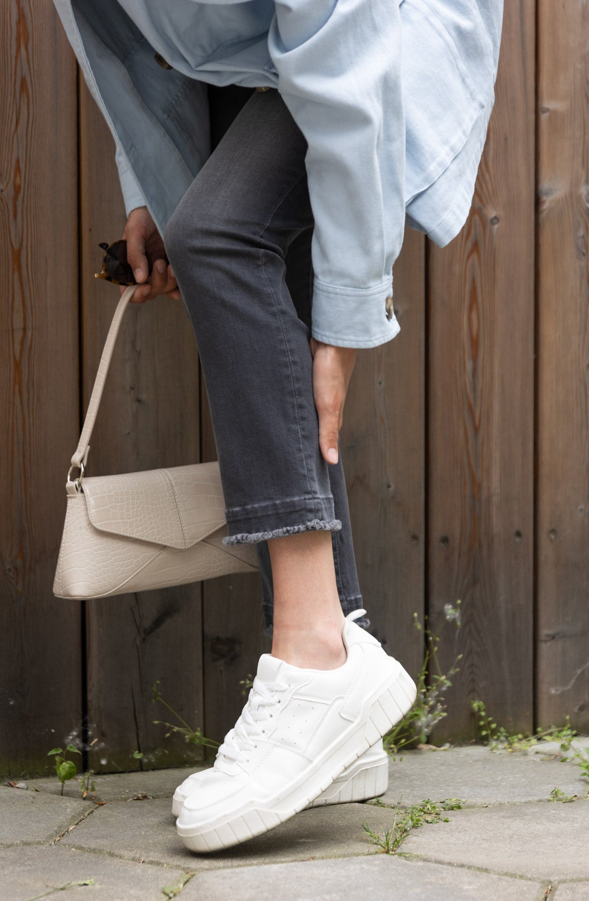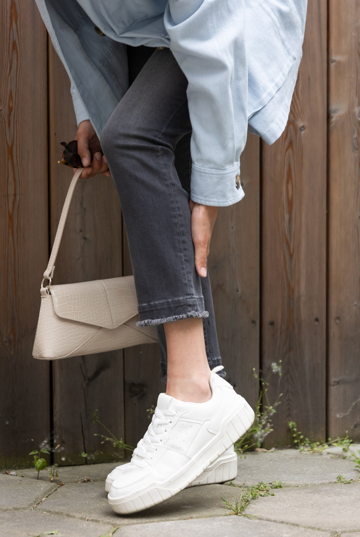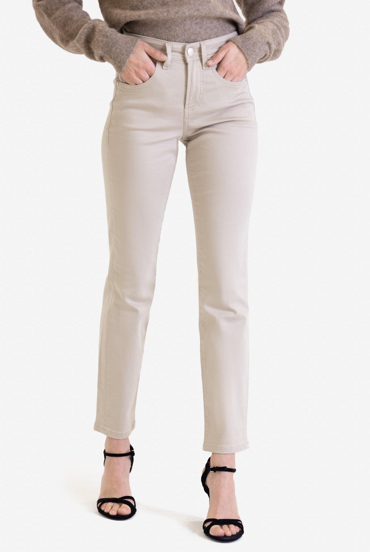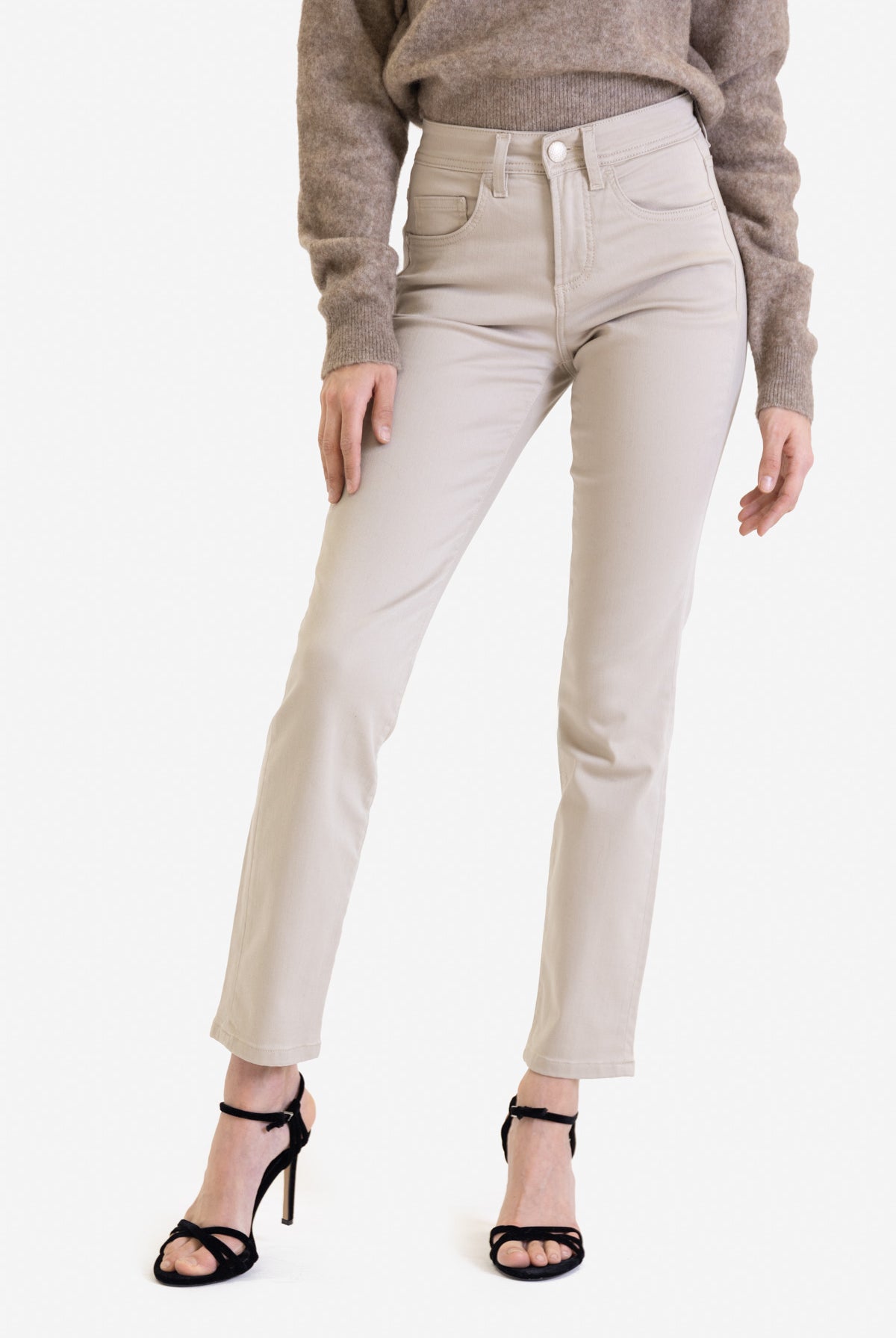 Straight Fit jeans. Medium waist. Straight leg. Very soft and delicate fabric in grey colour with fringed. Our Model is 170cm tall and wears size S/28.
