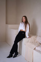 The most elegant trousers in our collection. High waist. Flared leg. Our Model is 171 cm tall and wears size S/31.