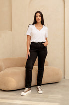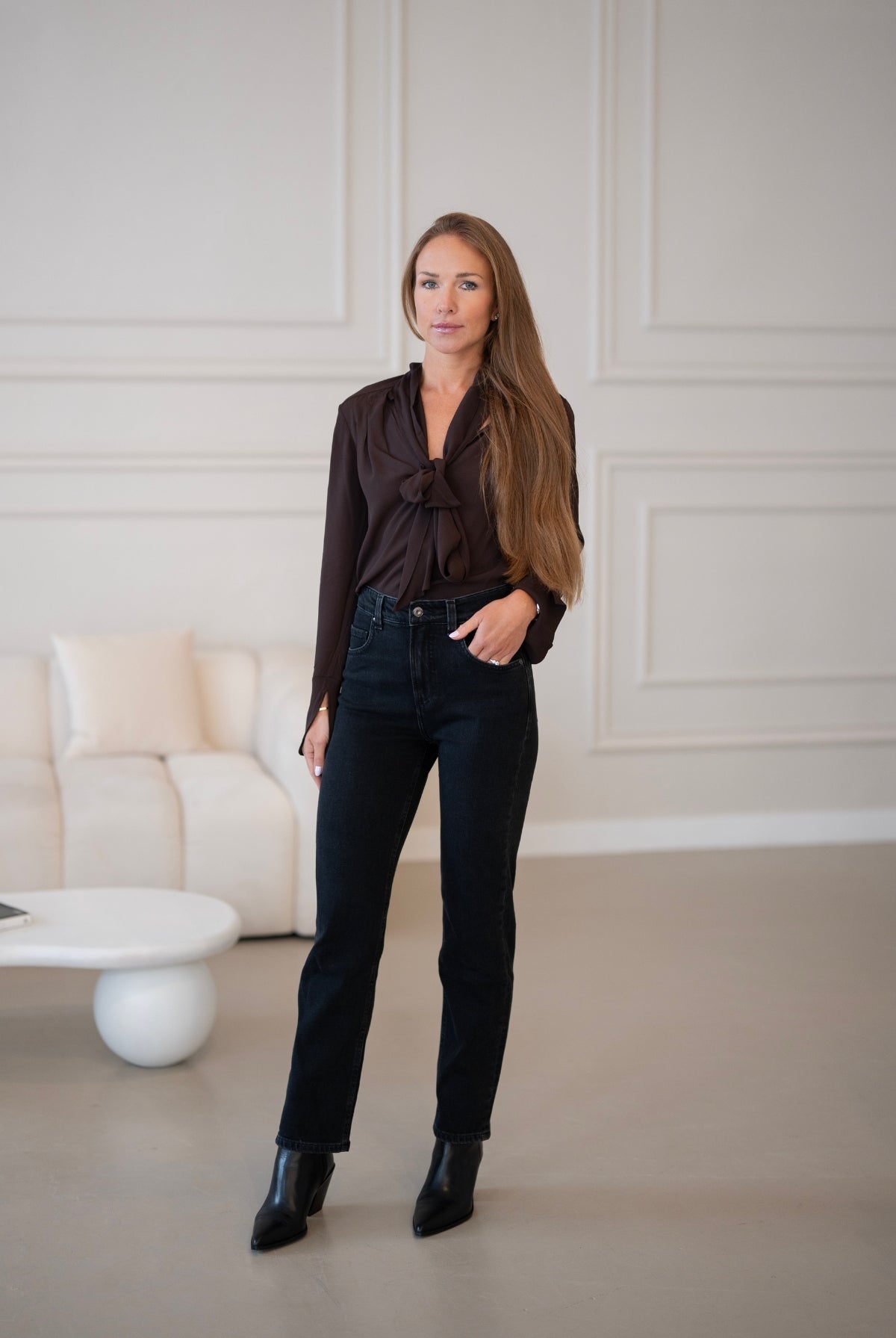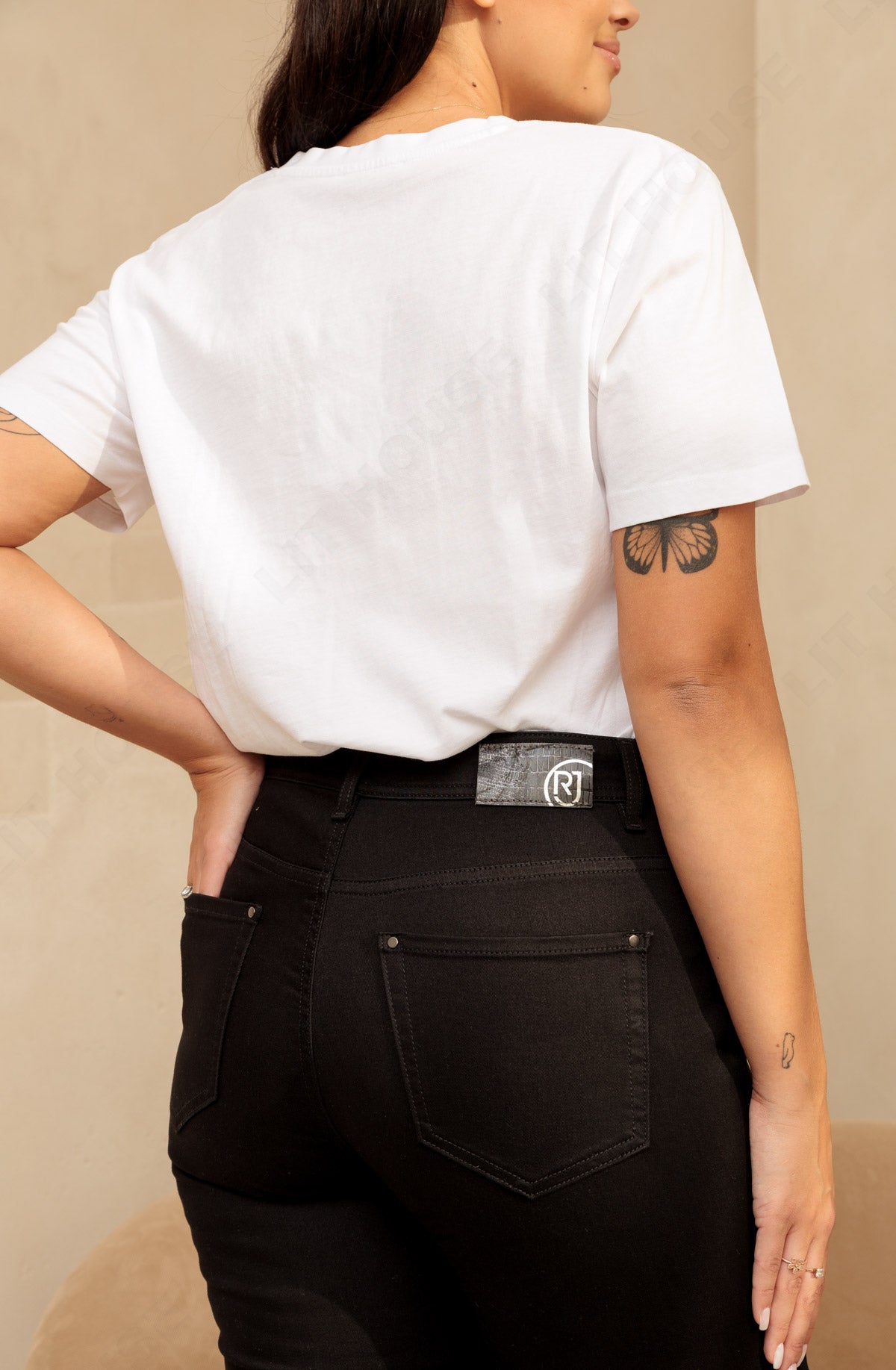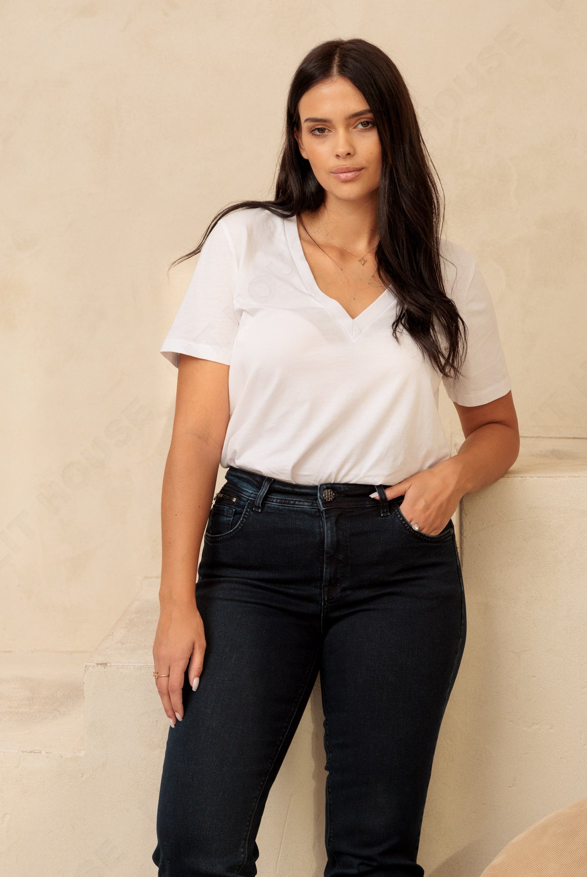 Bootcut jeans with high waist and slim leg. Our Model is 170 cm tall and wears size S/32.