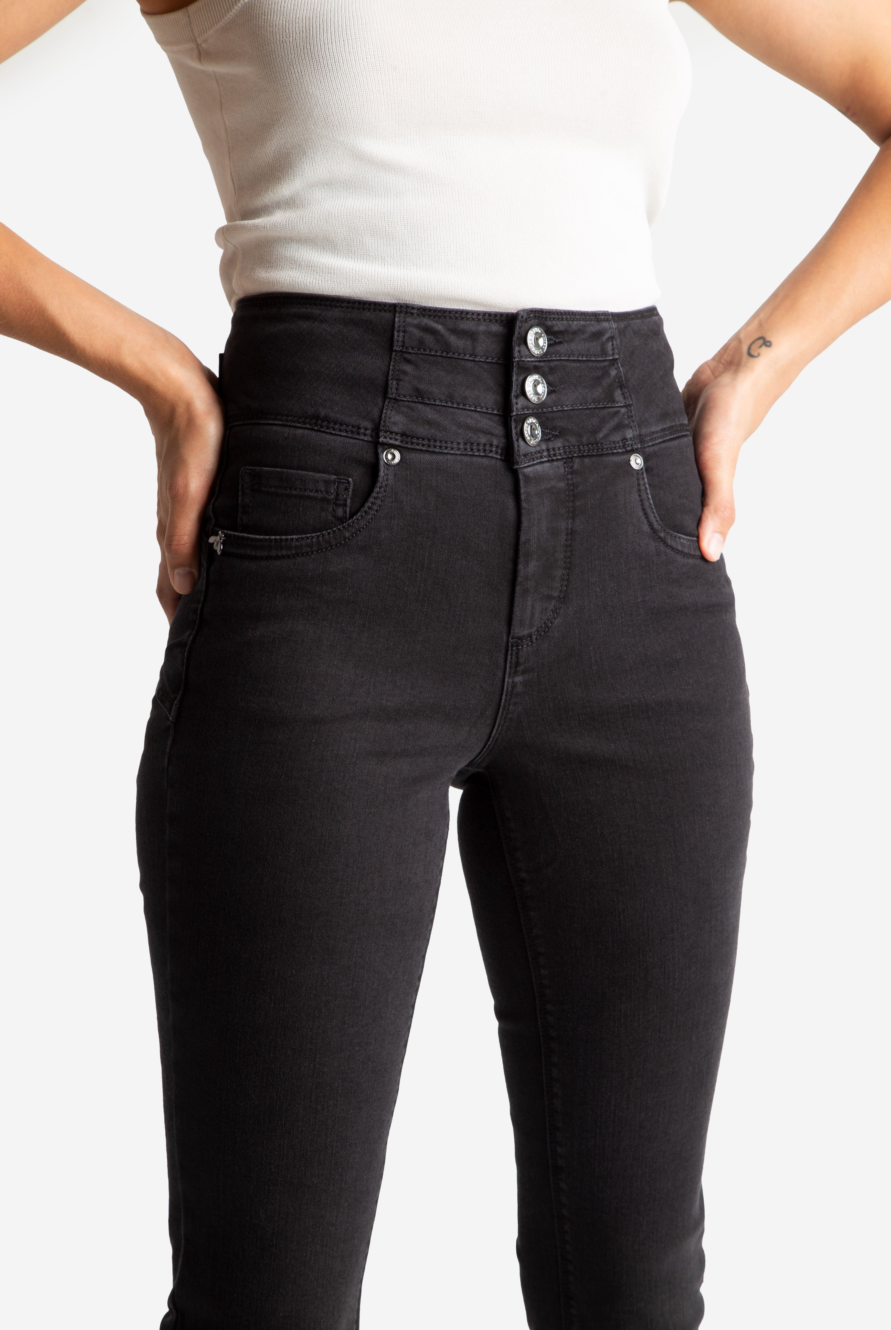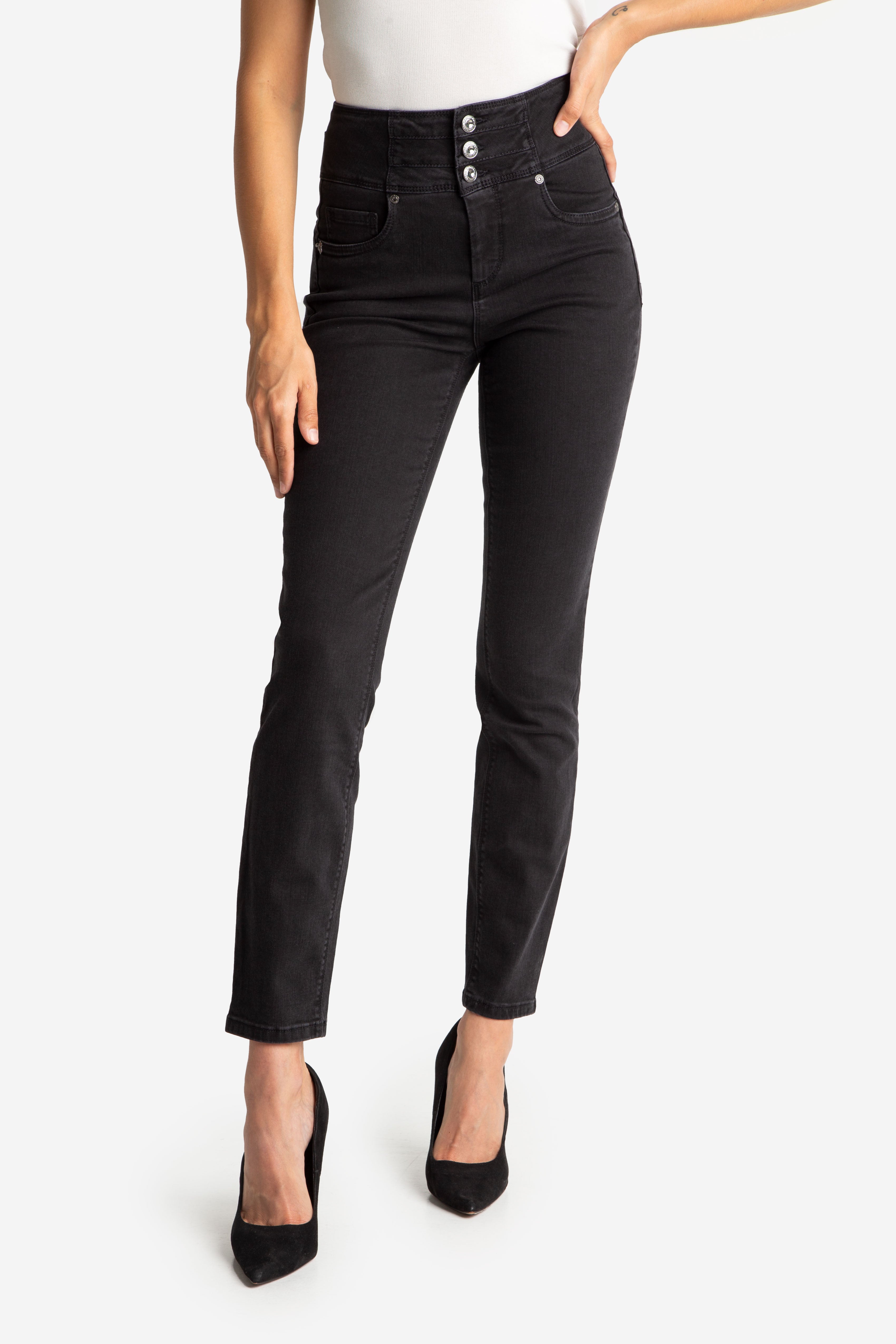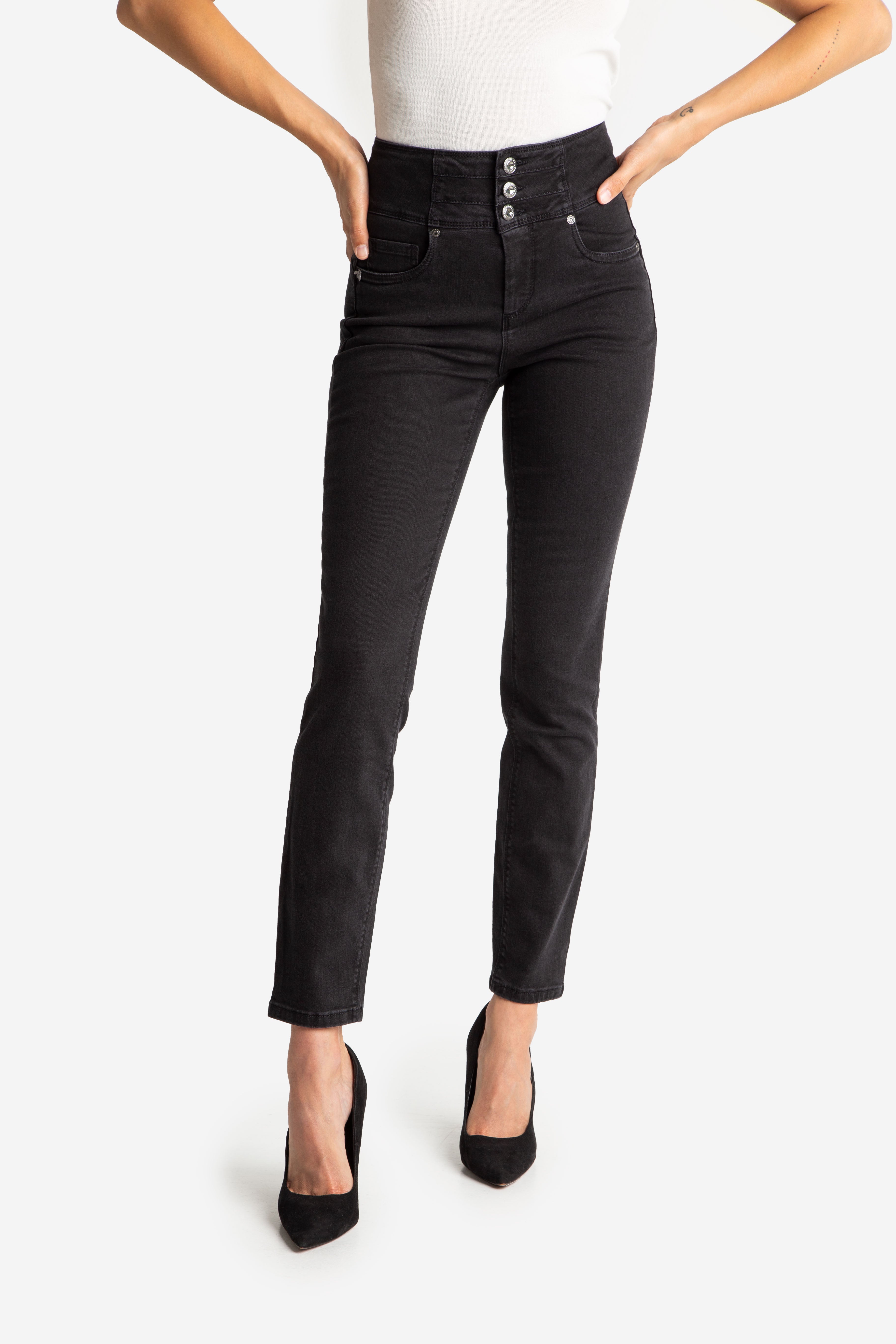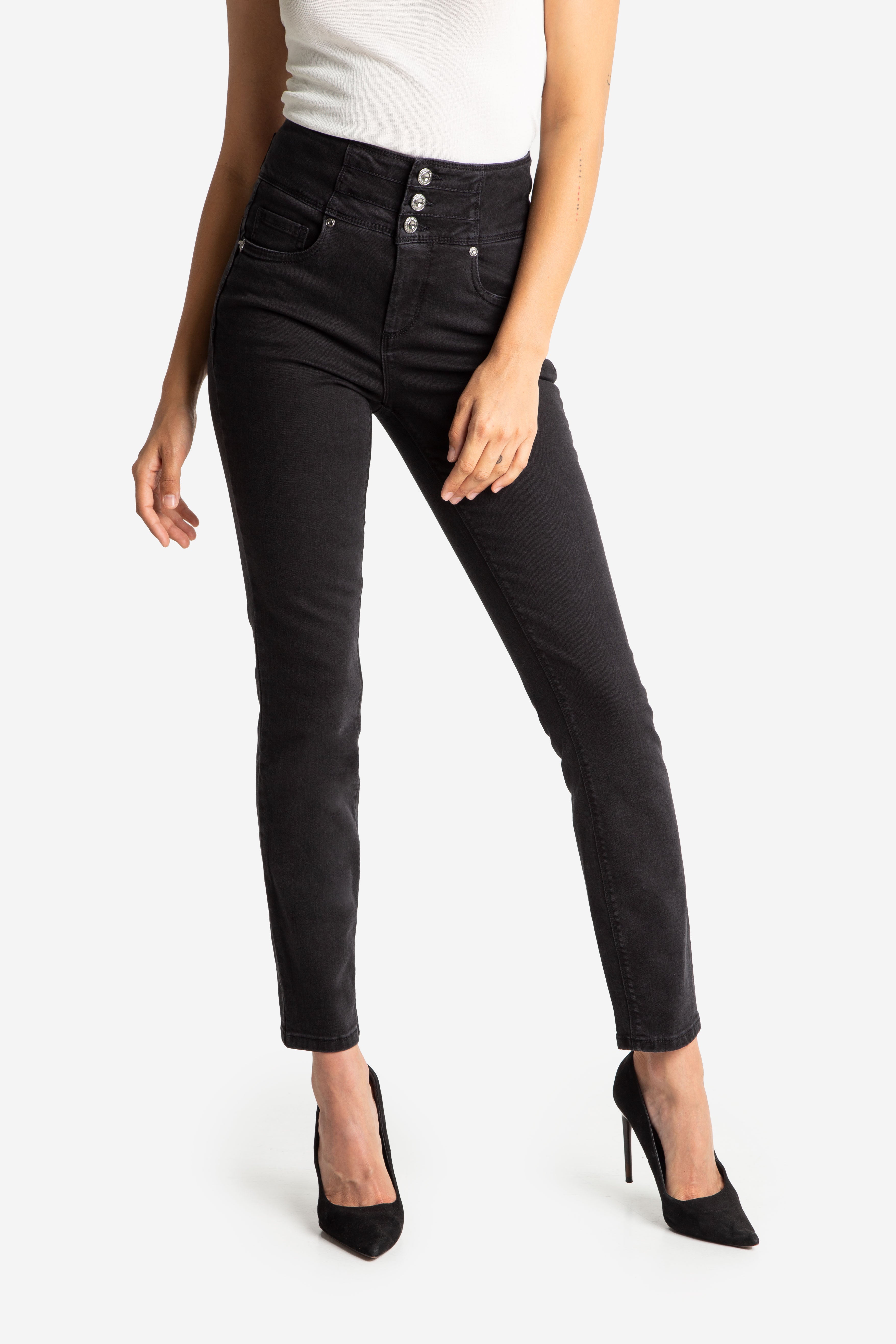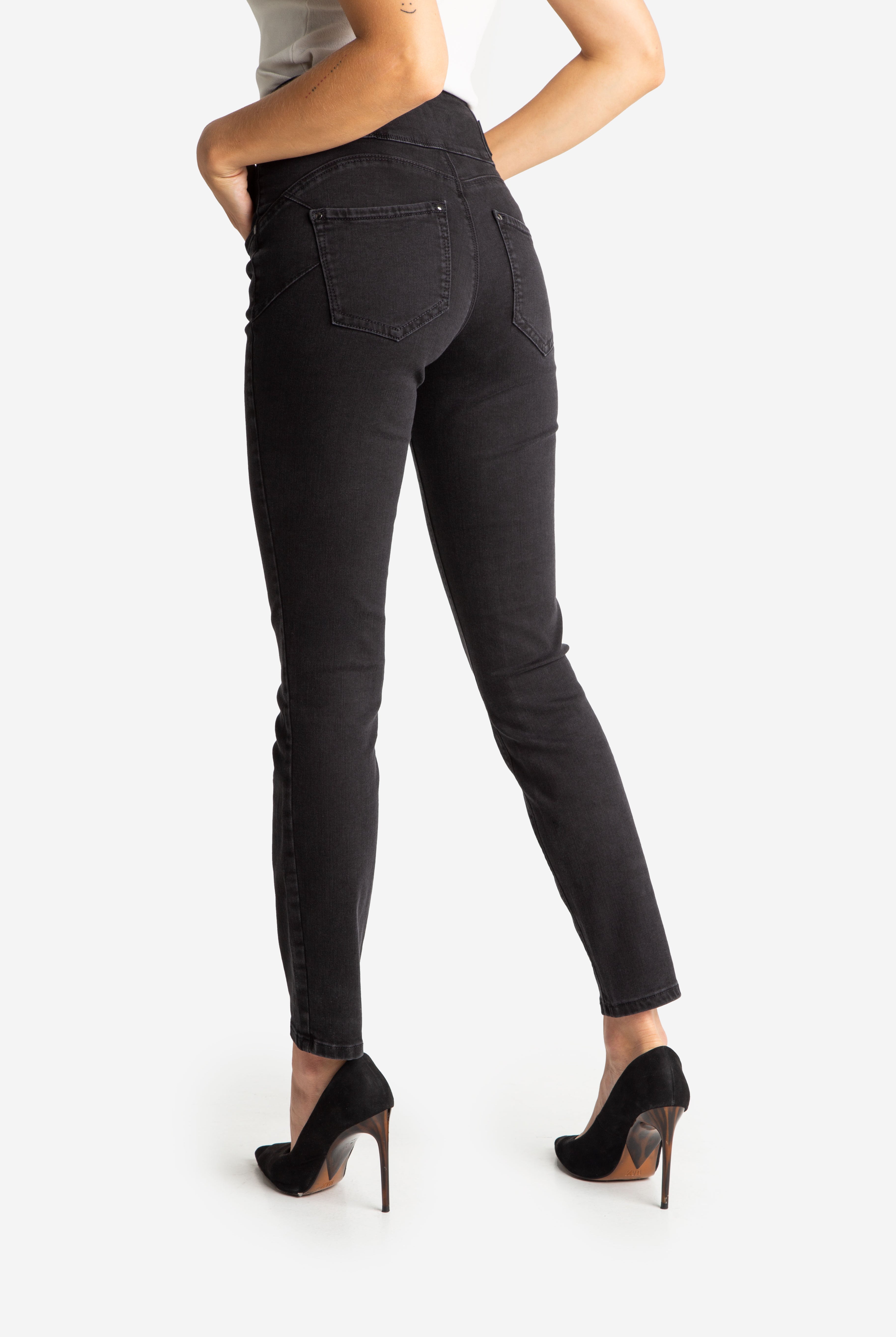 Slim leg, high waist jeans in black colour. Our model is 172 cm tall and wears size S/30.