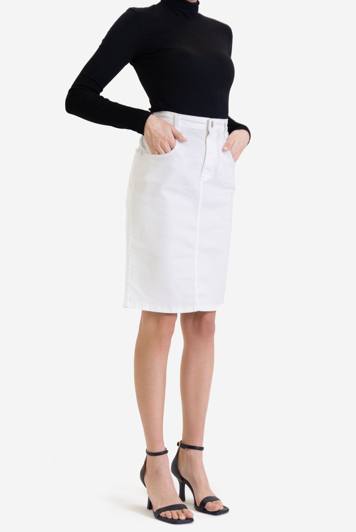 Kolejna odsłona naszego bestselleru Alice w przepięknym śmietankowym kolorze. Spodnie o bardzo modnym fasonie z wysokim stanem i szeroką nogawką zawężoną dołem zaszewkami, co pozwala na wyeksponowanie szczupłej części kostki. Są wykonane z bardzo miękkiego, naddającego się materiału. Akcesoria w kolorze jasno miedzianym odznaczają się na tle materiału i nadają spodniom niecodziennego charakteru. Modelka ma 170cm wzrostu i nosi rozmiar S.