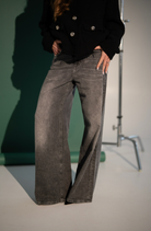 Odkryj nową wersję naszego bestselleru Clara w przepięknym odcieniu szarości. Zastosowaliśmy niecodzienne efekty spierania nadające głębię oraz świetlistość koloru. Spodnie typu WIDE LEG, z szeroką nogawką oraz średnim stanem. Modelują sylwetkę, podkreślają talię oraz wydłużają nogi! Denim ma w składzie lyocell, dzięki czemu spodnie są cudownie miękkie i „lejące się” co pięknie wygląda przy szerszej nogawce i daje efekt niesamowitego komfortu. Ela ma 170cm wzrostu i nosi rozmiar S/32.