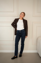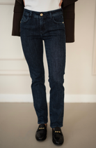 Nowa odsłona naszych klasycznych dżinsów z prostą nogawką i średnim stanem. Wykonane z elastycznego i miękkiego materiału w kolorze ciemnogranatowym. Pokochasz je od pierwszego założenia! Modelka ma 170 cm wzrostu i nosi rozmiar S/31.