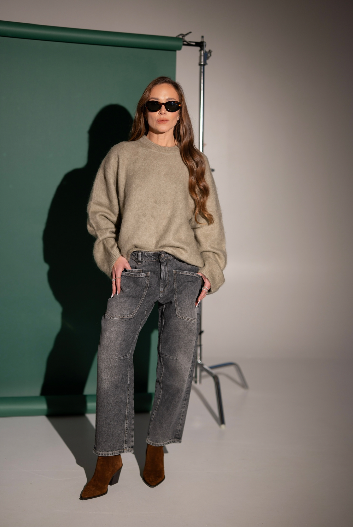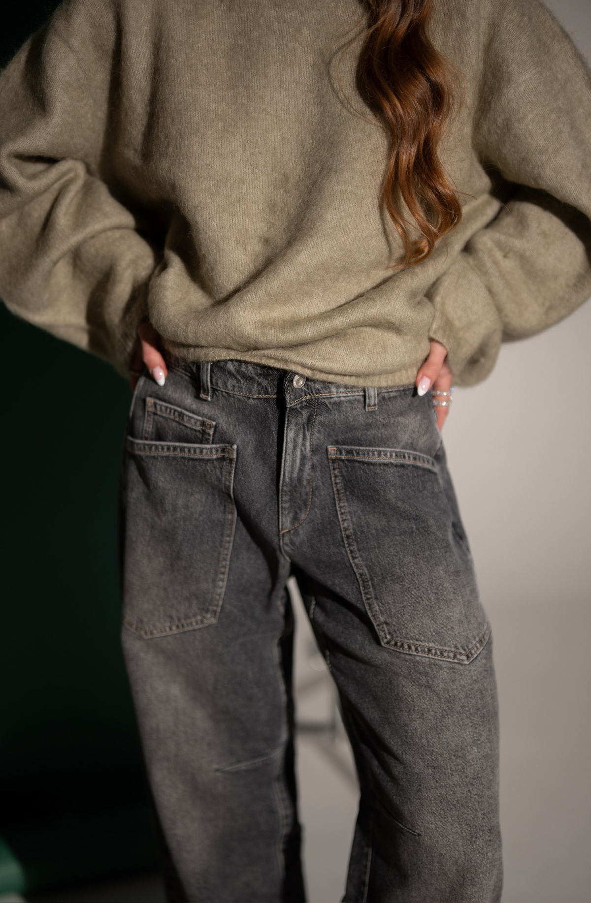 Jeansy typu boyfriend w przepięknym odcieniu szarości, które będziesz nosić cały rok! Wykonane z denimu, który ma w składzie lyocell dzięki któremu są miękkie i „lejące się” co idealnie sprawdza się przy szerszej nogawce. Mają średni stan, szeroką nogawkę lekko zawężoną ku dołowi. Duże kieszenie nadają sportowego charakteru. Ela ma 170 cm wzrostu i ma na sobie rozmiar S/28.